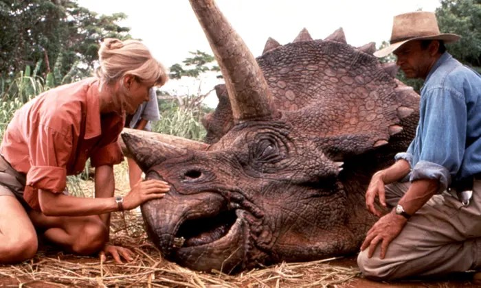 Alan, Ellie, and Ian Malcolm reach Jurassic Park and see live dinosaurs. 20