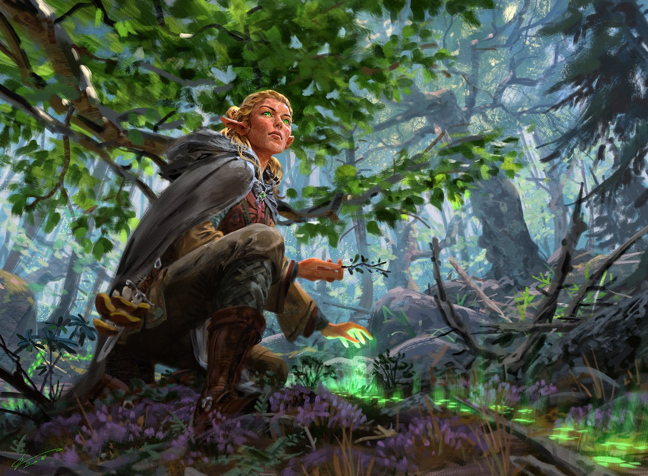 Druids have many of the same abilities as clerics and can be thought of similarly, but they also have an affinity for nature that should be of particular use at times. Wilderness creatures, both intelligent and not, may be entreated to help–at least in terms of information–a company with a druid instead of flee or fight it. Or some bit of knowledge of nature can prove particularly helpful. Just having a bird flit down to perch on a druid’s shoulder or an NPC’s pet dog or cat or livestock show affection to the druid adds nice color.