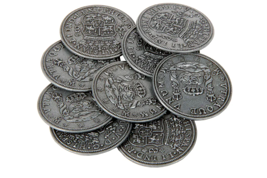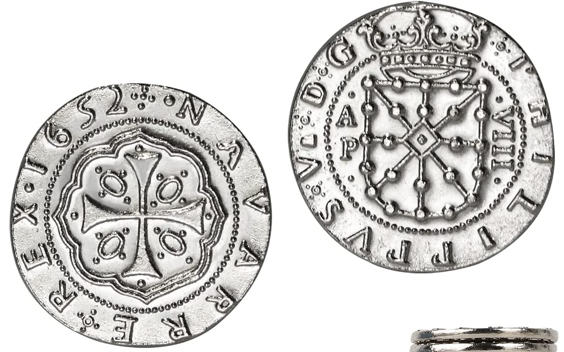 Mopanxi sells a very nice replica of a 1652 Navarre silver doubloon at 25mm that could likewise help fill out a set at just 47¢ each.