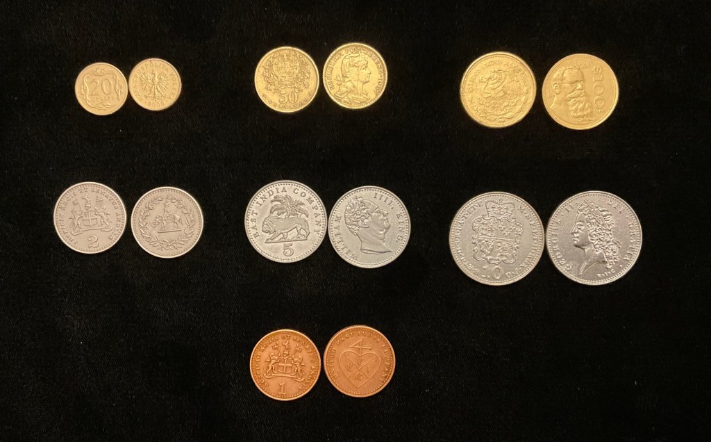 What follows is an attempt to document the available metal coins that are, in my opinion suitable for building a bank. Board Game Geek has a good review of various games with metal coins, but I have left many of these off because they are only one or two denominations or look ugly or like tokens.