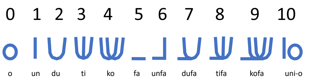 Because the way the system works is bi-quinary, I chose “2-5” as the basis of the name for the system itself: Dufanary (DU-fahn-airy).