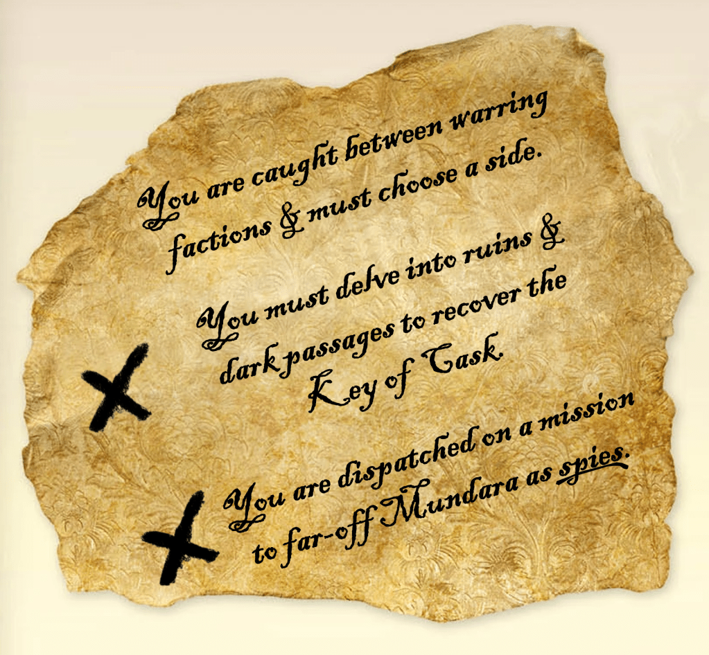 Here’s another example. You use rumors of magic items to be had if the heroes delve into the Broken Abbey of Horndale versus raiding the Hag’s Crag in the mountains. But you’ve already created a rival adventuring company or a small villainous faction, and whichever adventure the heroes choose, the opponents will take the other. Now the bad guys have the Helm of Reptiles while the heroes wield the Axe of Ten Blows.