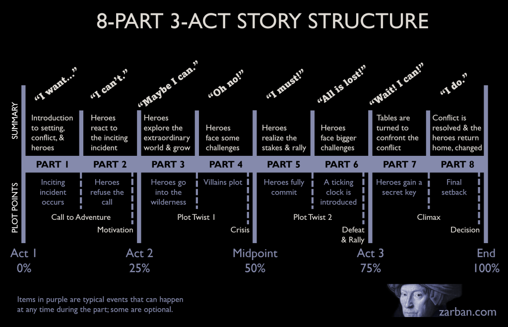 However, take note that successful stories don’t follow any order of events this strictly. Some of these points can move around or be left out.