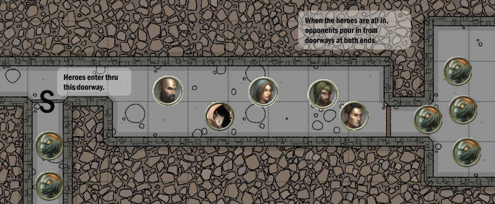 Remember: the heroes want to get in but also have to be able to get out. The opponents live here; they can wait for the heroes to try to move.