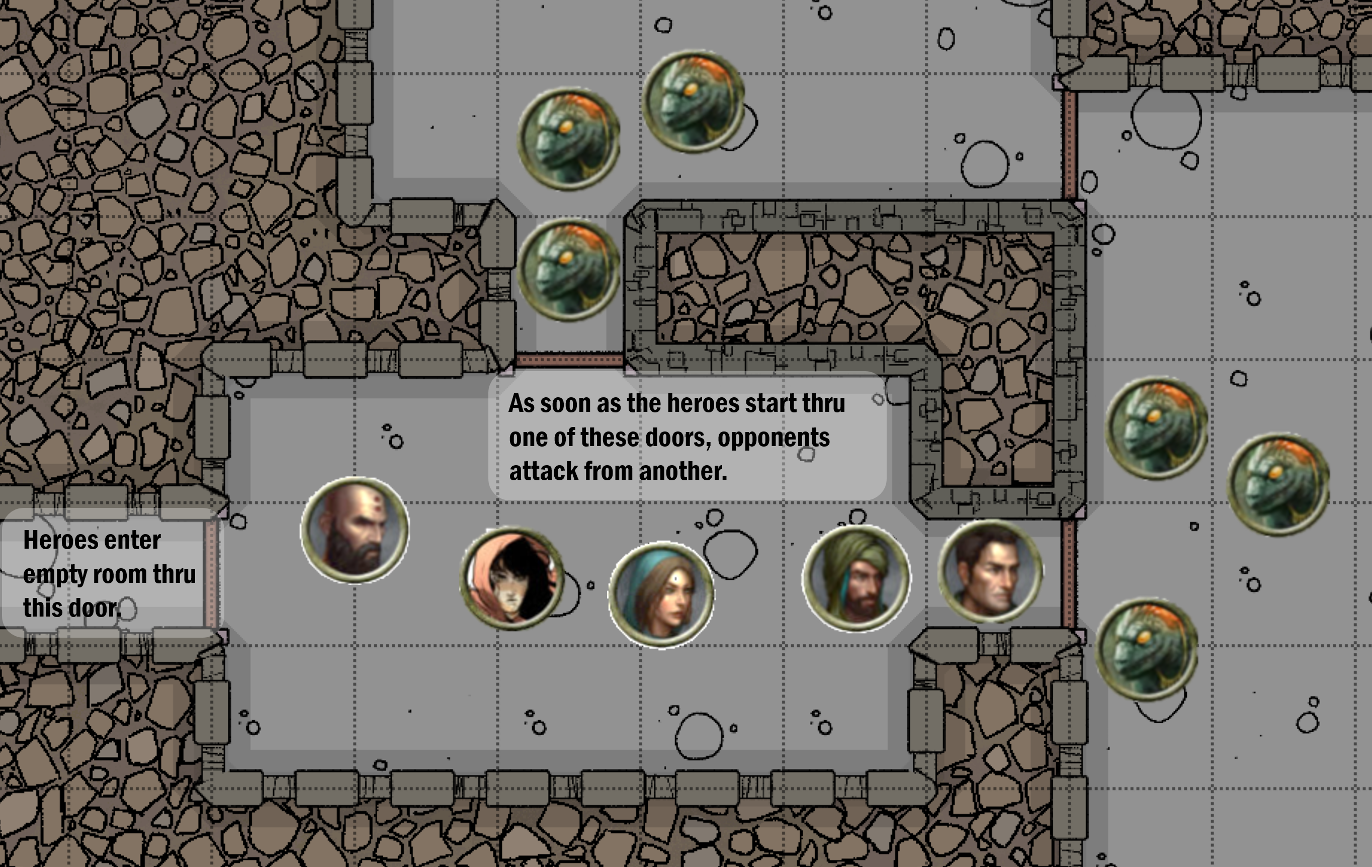 - Some opponents enter the room when the heroes are in the middle of doing something, like examining a trap.