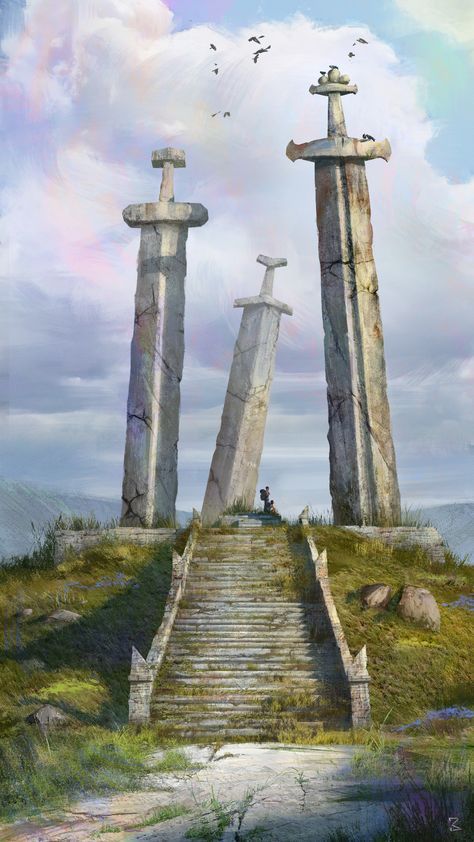 - A great statue dominating the landscape (a god, saint, hero, or monarch).