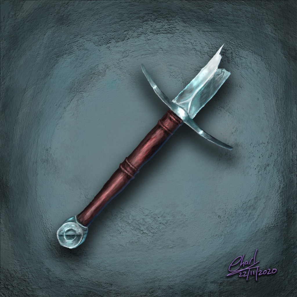 Or the character can learn that the item will reveal additional powers once he or she accomplishes some specific task, such as finding its missing gemstone or returning the lost relic of Saint Ustis to the Capital Cathedral. The task should be related to the item’s type and/or history in some way, such as once having been wielded by Saint Ustis.