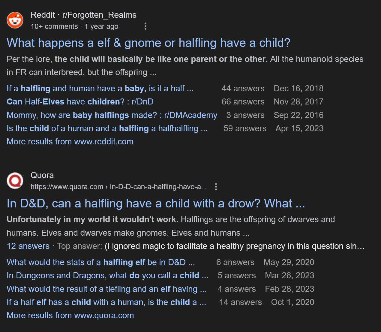 Personally, I dislike half-orcs, half-elves, and the like. And the kind of hybridizing that sometimes goes on in modern D&D–where any humanoid can breed with any other–is bizarre. It suggests that all humanoids are actually the same species, which means they should already have bred themselves into just a handful of sub-species, like dogs before humans started selectively breeding them.