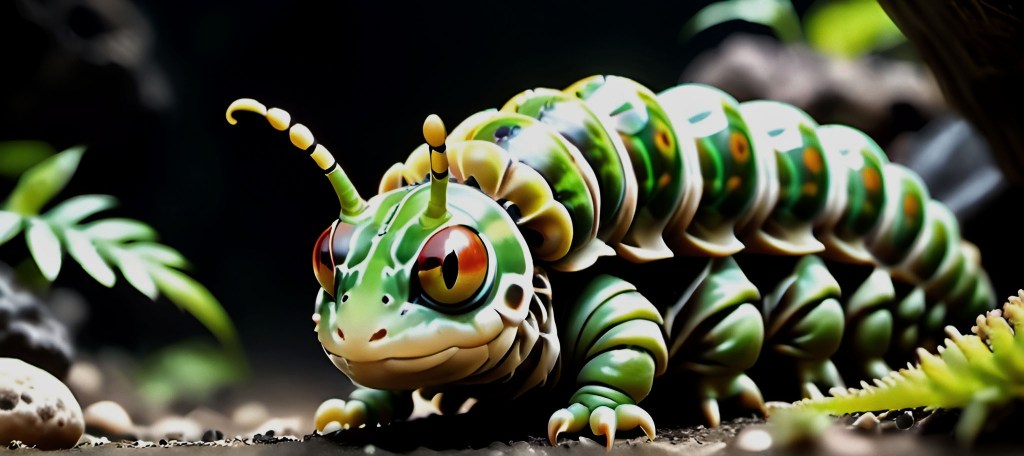 Eventually, the heroes find the voice comes from a fat, green caterpillar several inches long. The caterpillar speaks with a young woman’s voice and explains it is a corpse worm, which crawls into the ear of a cadaver and eats the brain. As a result, it gains the memories and voice of the last cadaver it dined on.
