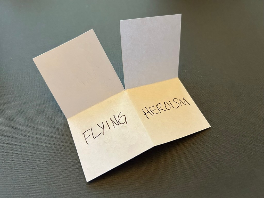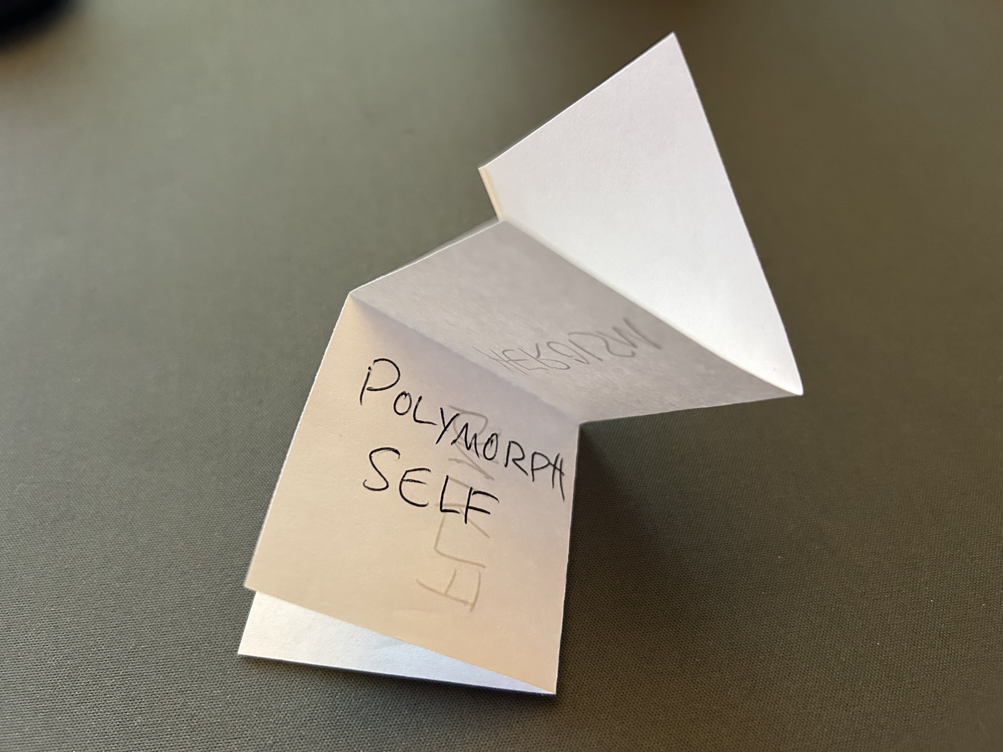 In this case, you write down two of the potions on the piece of paper beforehand. First, fold it in quarters, then cut one of the folds, then write two potions on a part that folds away from the others. When the time comes, “find” the scrap of paper, add the third potion while they watch (but don’t let them see what you’re writing). For the reveal, unfold the paper close to you so they can’t see anything written on it until you present the side with the potion they chose.