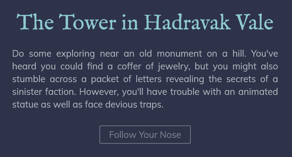 - Rescue the son of a local official from a vampire and her minions at a manor. You could find a mysterious artifact. But you may have trouble with a small band of orcs.