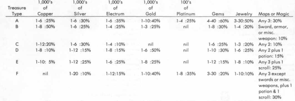 Now, there’s probably too much treasure given out by these old tables. Those systems assumed characters were saving up to build a stronghold, but few care about such things now (altho WotC wrote an optimistic “bastion” system into the 2024 books).