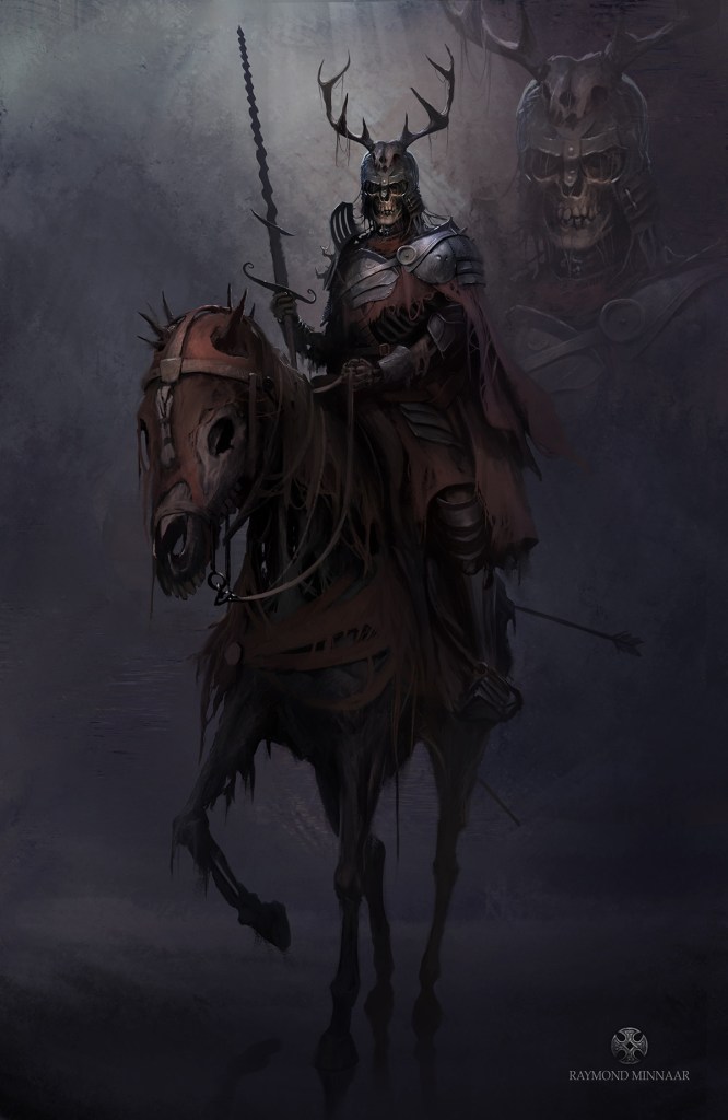 As they pass into lichhood, they become neutral rather than good but wholly dedicated to the land they serve as protector of. One eternal huntsman at a time is chosen by the gods to be the Master of the Wild Hunt, which sweeps up ghosts and other confused incorporeal undead and delivers them to the Underworld.