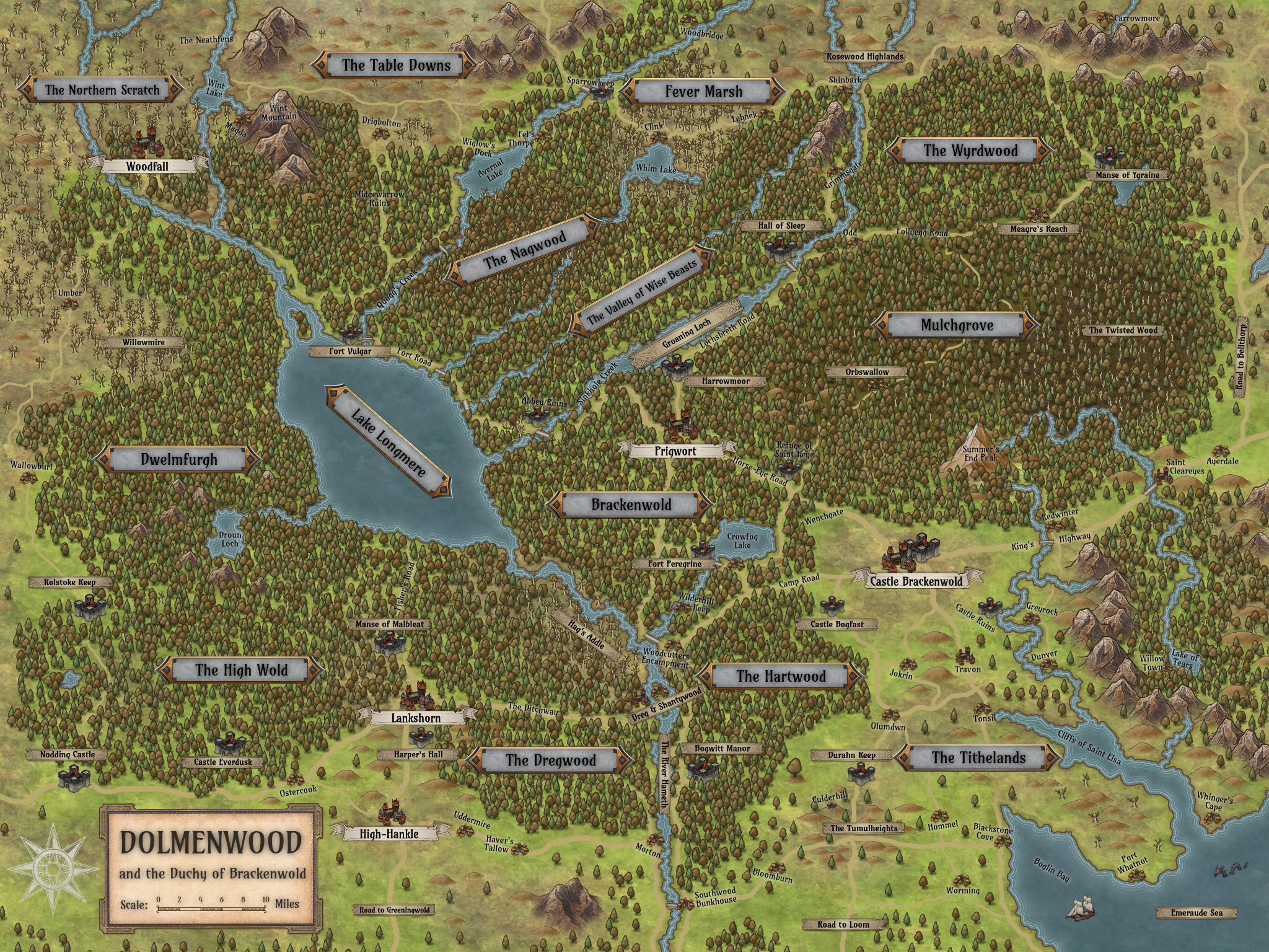 Moreover, heroes should be travelers. They should roam far and wide, generally a few days’ travel from one adventure to the next. Dolmenwood is so densely packed with points of interest that there’s no need to wander into the countryside, let alone across the sea.