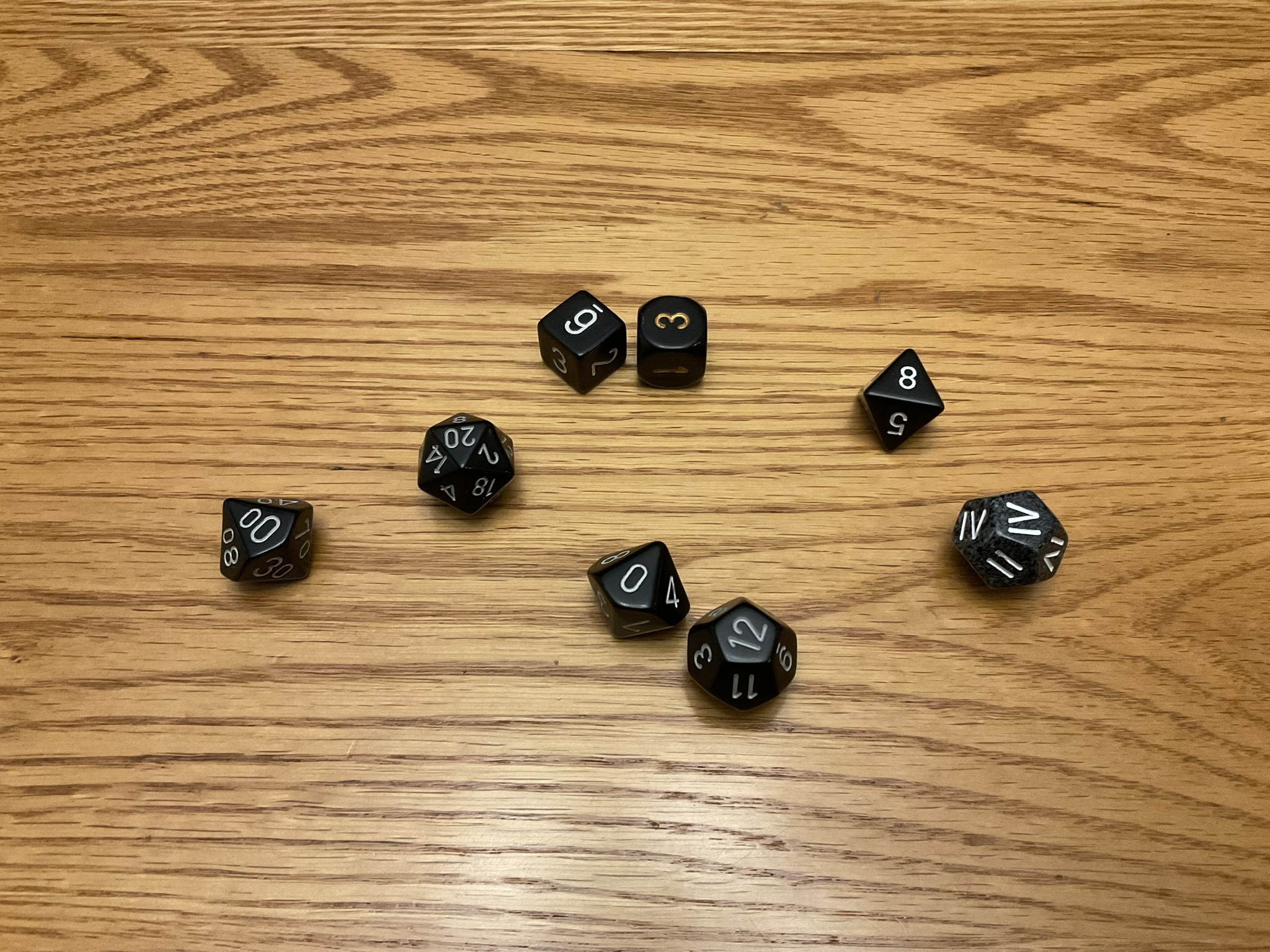 There are many weird dice for sale, some of which are used by certain game systems, others of which are really just for fun. Dungeon Crawl Classics, for example, is known for its use of “funky dice”: the d3, d5, d7, d14, d16, d24, and d30, which aren’t a part of the traditional D&D set of d4, d6, d8, d10, d12, d20, and d100.